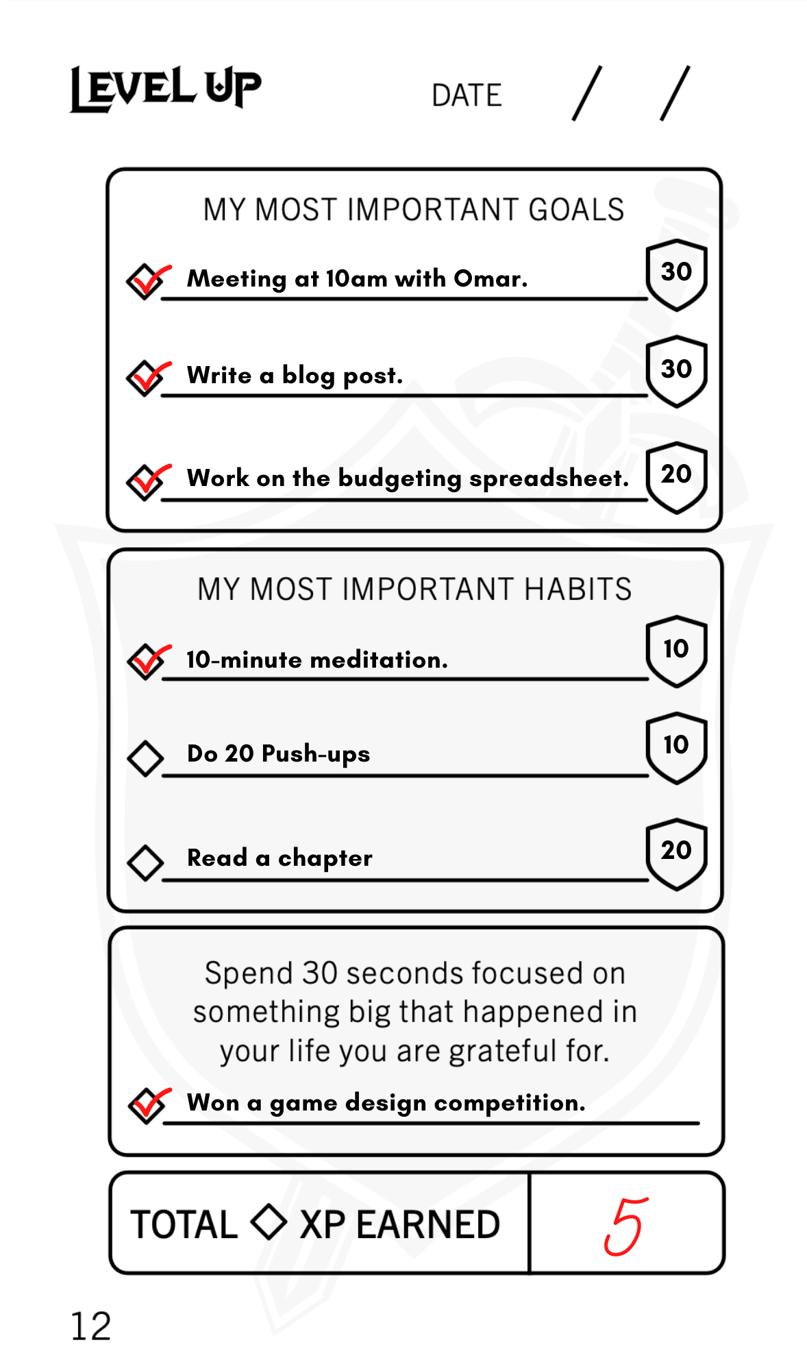 Automate important daily tasks by using The Level Up Journal's proven habit building system.